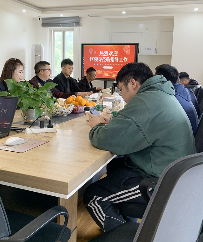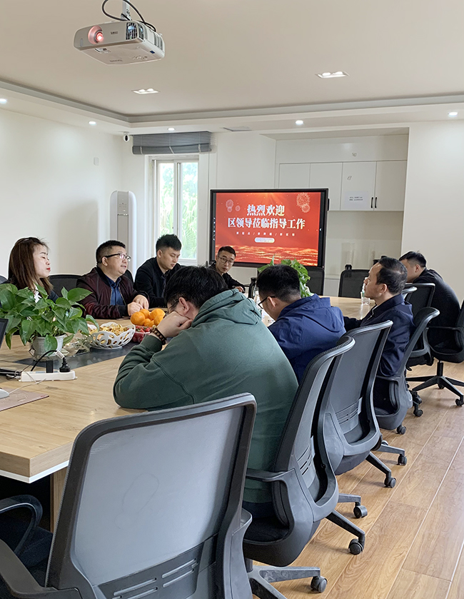 在会谈中,袁总向各位来访的领导介绍了公司的主要业务以及经营情况。区领导在听取了袁总的介绍后,对公司的工作给与了肯定,并且对相关工作进行了指导。