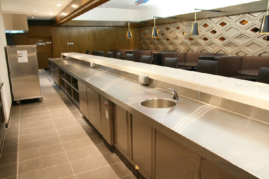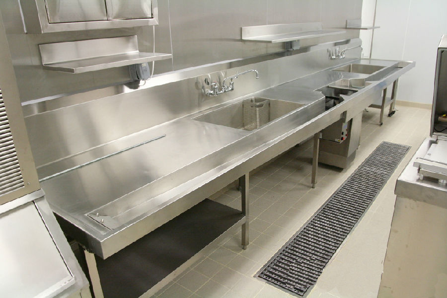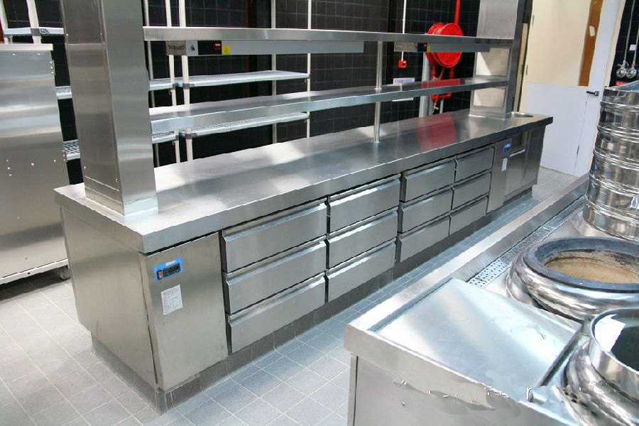 依然是一流的现场无缝焊接工艺,台面非常平整,对土建(地台施工),现场焊接工艺,调理台的制造工艺要求非常高。工作台的背板用大弧度L型设计,避免藏污纳垢,容易清洗。