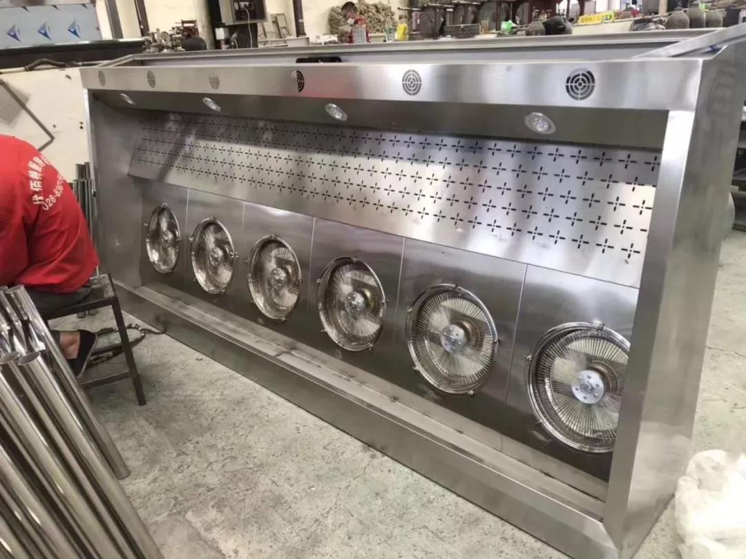 (此图为工人加工一体烟罩图,虽然在加班,但工人们还是兢兢业业的做好每到工序)